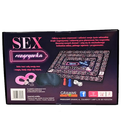 S touto hrou znovu objevíte svá těla a intimitu, osvěžíte svůj sexuální život a ochutnáte nové, pikantní pocity, které vám zůstanou v mysli po dlouhou dobu. Hra obsahuje rozsáhlé stránky grafy pro hru, která obsahuje sexy úkoly a intimní otázky, dva pěšáky, dvě kostky a navíc pásku přes oči, která umocňuje pocity a touhy, a také a také sexy pouta s kožešinou, aby byla hra ještě divočejší a nepředvídatelnější!