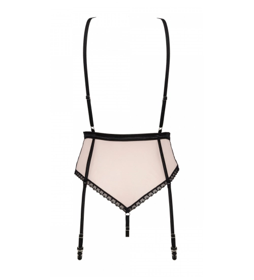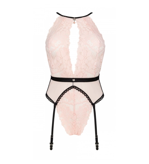 Mimořádně smyslné a chutné krajkové body, aby byl váš večer kouzelný. Krásné světle růžové krajkové body zeštíhluje pas i zdůrazňuje ženské křivky. Delikátní květinový vzor a šperkové vložky ještě více elegance a půvabu. Sexy, černá ramínka a podvazkový pás celá sada vypadá velmi nezbedně - ideální pro noc strávenou v posteli.
