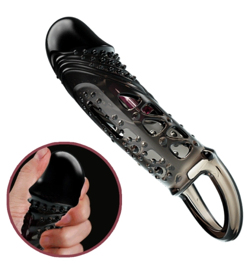 Má tvar připomínající mužský penis, doplněný o malé výstupky , které umocňují ženské pocity. Hračka je vyrobena z černé hladké gelové hmoty. Pocítíte delší a silnější erekci a váš partner bude mít ze styku ještě větší potěšení .