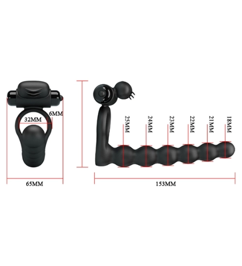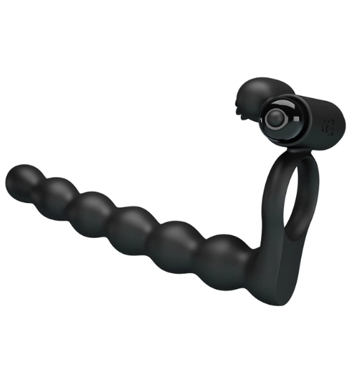 Tento gadget je kombinací vibračního návleku na penis, análních kuliček a stimulátoru klitorisu. Jeden zblízka a tolik vjemů! Kroužek, který těsně přiléhá k vašemu penisu, omezí průtok krve a zvýší otok vašeho penisu, čímž zesílí pocity vás i vašeho partnera.