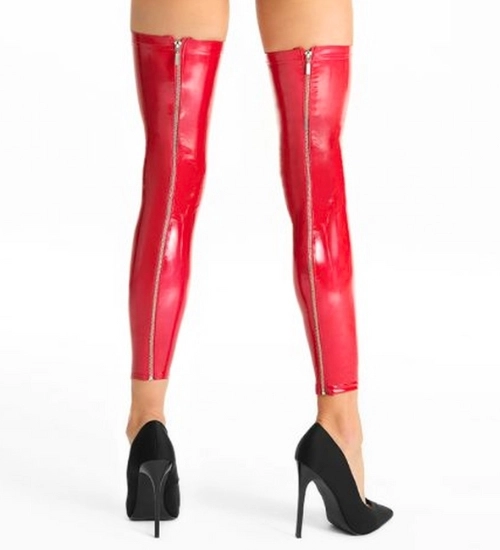 Hledáte pekelně sexy punčochy? Originálním návrhem pro vás může být model z červené barvy, z lakované látky chybí typ. Tyto punčochy se vyznačují intenzivní barvou a vysoce lesklým zrcadlovým materiálem, proto v nich bude každá žena vypadat opravdu úžasně!