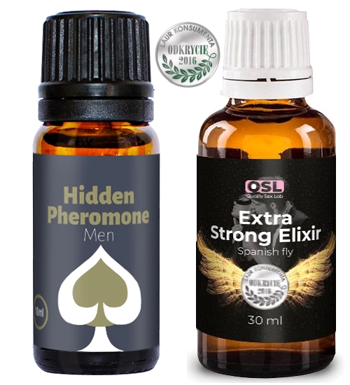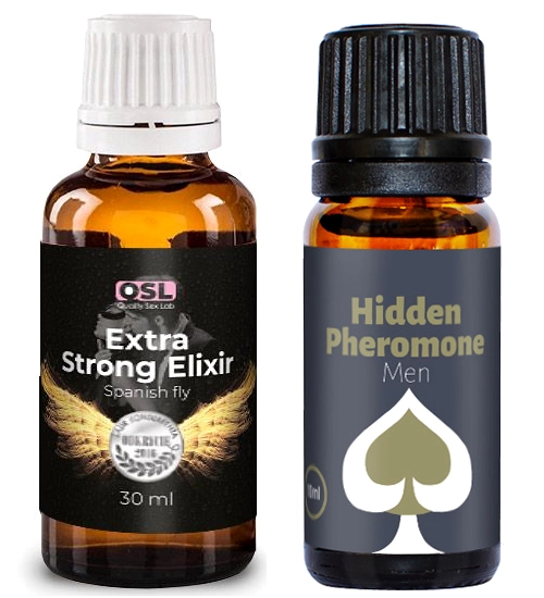 To je kombinace, která vám pomůže zažehnout jiskru vášně a svůdnosti. Extra Strong Elixir jsou kapky pro ženy , které zvyšují chuť na sex , zatímco Hidden Men jsou mužské feromony , které přitahují pozornost a stimulují smysly .