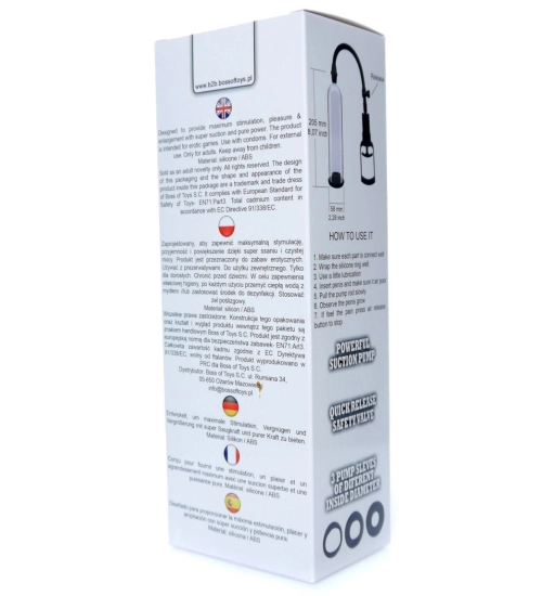 Tato vakuová pumpa je určena pro muže, kteří chtějí zvětšit velikost svého penisu a zlepšit svou erekci. Pravidelné používání pomáhá zvětšit velikost penisu a zlepšit erekci.