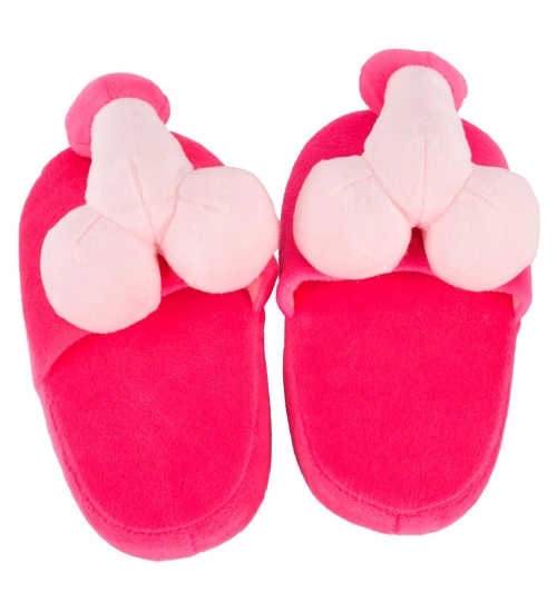 Jedinečný dárek pro každou ženu. Pantofle jsou vyrobeny z měkkého materiálu, který příjemně obepíná nohy. Přístroj je teplý, nutnost sundat pantofle jistě způsobí váhání. Na každé z nich je velký penis, což z nich nedělá obyčejné žabky.
