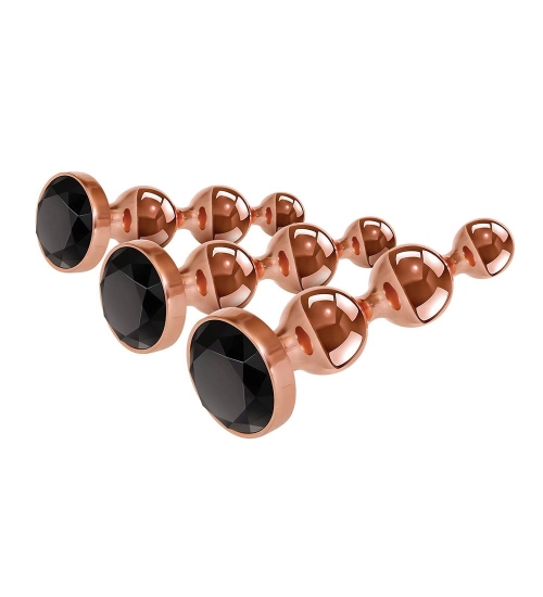 Tento exkluzivní elegantních a stylových zástrček zaručuje nezapomenutelnou a atraktivní zábavu pro každého. Sada obsahuje tři různé velikosti: malé, střední a velké. Tyto zátky mají baňaté, lesklé dříky zakončené černým křišťálem, které nejenže vypadají elegantně, ale také poskytují tělu příjemný pocit.
