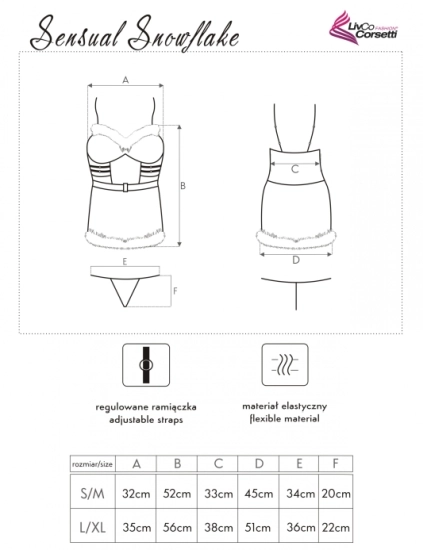 Vestavěná podprsenka dokonale zdůrazní ňadra , probudí mužské smysly a dodá těmto šatům nezapomenutelné kouzlo. K šatům jsou dodávána nejen lákavá tanga , ale také elegantní páska přes oči , která tvoří ucelenou sadu plnou smyslných kouzel .