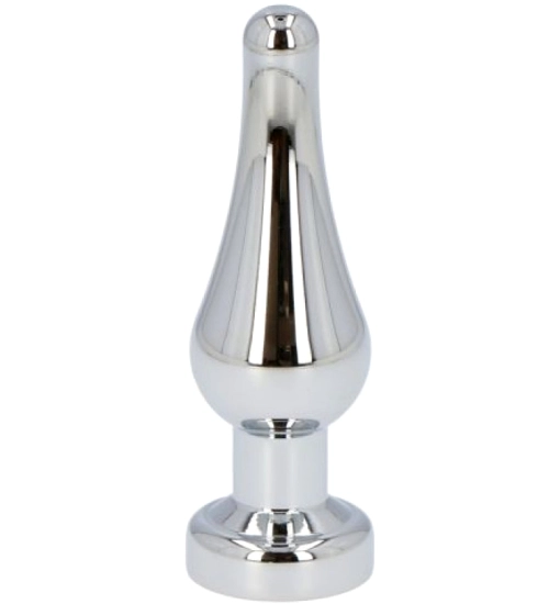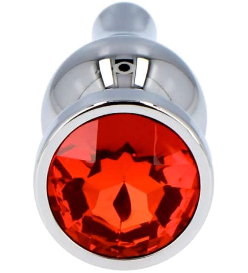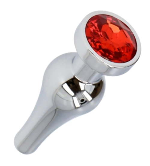 Stříbrný anální kolík s lesklým červeným šperkem na základně, vyrobený z hygienického a z nerezové oceli bezpečné pro tělo. Zúžená ergonomická špička umožňuje jemné, postupné zavádění, a kuželovitý tvar s rostoucím průměrem poskytuje pohodlí a intenzivní pocit. Hladký povrch a pečlivě navržený design zajišťují bezpečné uchopení a plnou kontrolu. Robustní, hygienické a snadno se čistí, dokonale spojuje estetiku s funkčností a zaručuje naprostou spokojenost.