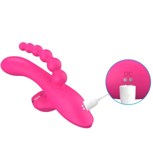 vestavěná dobíjecí baterieMultifunkční růžový vibrátor s análními korálky