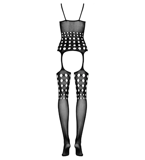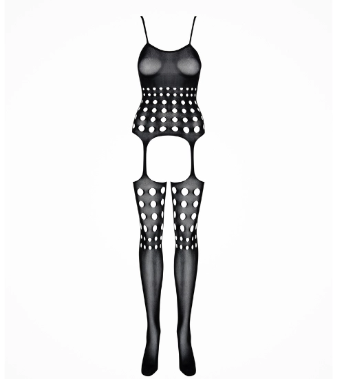 Svůdný bodystocking s očky je originální kombinace topu, podvazkových pásů a punčoch, která jedinečným způsobem zvýrazňuje ženskou siluetu. Tento design kombinuje prvky klasického spodního prádla s nádechem smyslnosti, nabízí nápadnou expozici těla ve tvaru subtilní, přesto sofistikované.