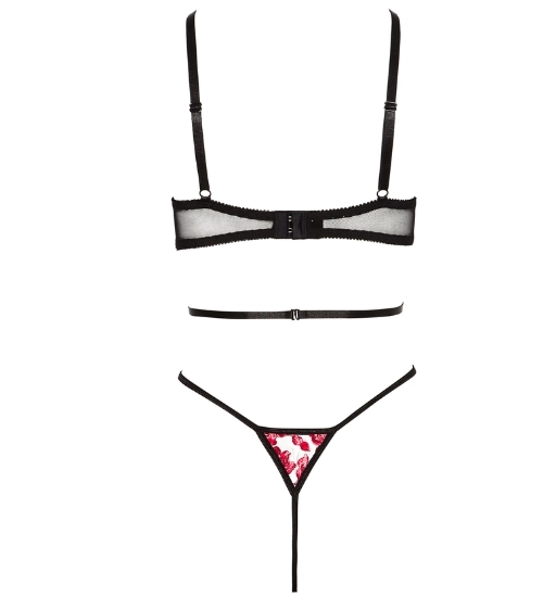 Evangelino květinové tělo je kombinací smyslného designu a elegance, která zaujme na první pohled. Vyrobeno z jemné síťoviny zdobené červenou výšivkou, dokonale zdůrazňuje ženské tvary, přidání lehkost a jemnost. Přední část modelu je zdobena decentním vyšívaným vzorem, který odhaluje poprsí, dodává celému vzhledu velmi ženský nádech. Dekorativní mašle s krystaly středová přední část přitahuje pozornost a dodává celku vznešený nádech.
