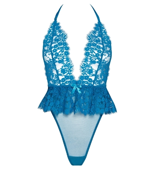 Každý detail je promyšlený - krajka krajkové volánky v pase dodávají lehkost, a nastavitelný ramenní popruh přes krk vám umožní dokonale přizpůsobit body vaší postavě. Zadní strana modelu je navržena tak, aby atraktivní zobrazení hýždí, díky tomu je toto body ideální pro romantické večery a zvláštní příležitosti. Tyrkysová barva dodává svěžest a podtrhuje krásu.