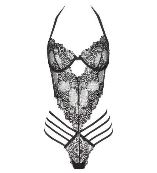Odvážné krajkové body kombinuje sexy vzhled i zajímavý střih. Průhledná tkanina odhaluje tělo, a prolamovaný vzor je poutavý a dodává celému oblečení na jedinečný charakter. Přední část se vyznačuje hlubokým výstřihem a trojúhelníkový povrch, který opticky prodlužuje siluetu.