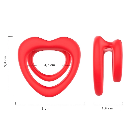 Skládá se z dvou spojených kruhů. Větší se nosí u základny penisu a menší se jemně obepíná kolem varlat. Tento design zpevňuje erekci a umožňuje delší a intenzivnější zážitek. Tvar srdce dodává jemný, romantický nádech.