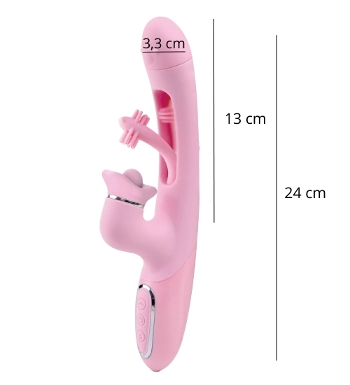 Elegantní růžový vibrátor kombinuje moderní technologie a jedinečný design. Jeho nejvýraznějším rysem je třepotavá špička s měkkými přídavky a měkké výstupky, které poskytují mimořádně příjemnou stimulaci. Třepotavý pohyb dodává intenzitu a umožňuje zažít zcela nové zážitky pocity - jemné, ale hluboké.