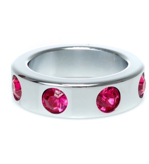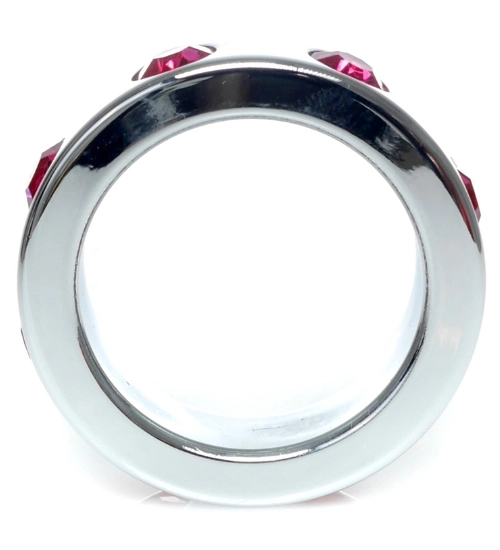 Velký kovový prsten s růžovými diamanty z nerezové oceli zaujme nejen svou funkčností, ale také designem. Ozdobné růžové diamanty po obvodu mu dodávají exkluzivní nádech. Tento šperk poutavé, spojení estetiky a potěšení. Vnitřní průměr kroužku je téměř 5 cm, je ideální volbou pro ty, kteří hledají větší velikost.