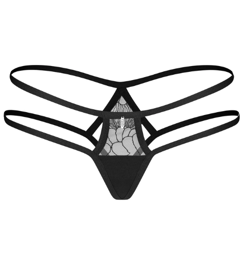 Svůdná tanga s pásky kombinují moderní design s elegancí. Jemná krajka a průhledný panel s výšivkou popruhy jsou speciálním prvkem a popruhy, které obepínají siluetu zajímavý styl. Jedná se o spodní prádlo, které svádí, ale ve velmi elegantním tónu.