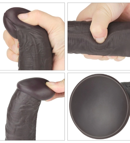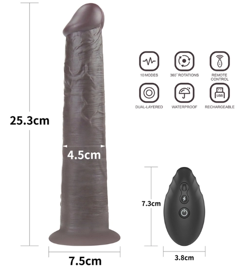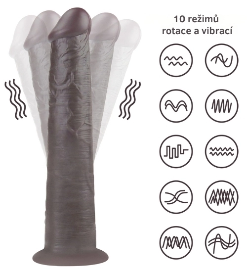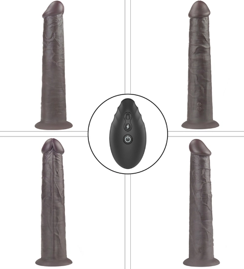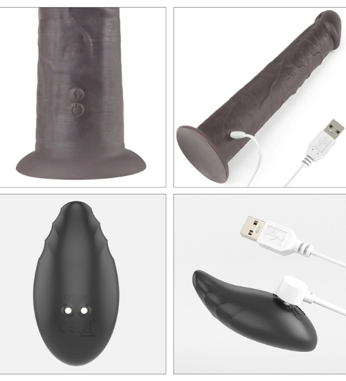 Tmavé dildo s bezdrátovým dálkovým ovládáním je moderní gadget, který zaujme svým realistickým vzhledem a pokročilé technologie. Pečlivě reprodukovaná hlava a dvouvrstvý dřík zaručují intenzivní a mimořádně přirozené pocity. Měkký a jemný povrch v kombinaci s pevný a stabilní vnitřek věrně reprodukuje pocity skutečné intimity, čímž se tento model liší od ostatních přístrojů svého druhu.