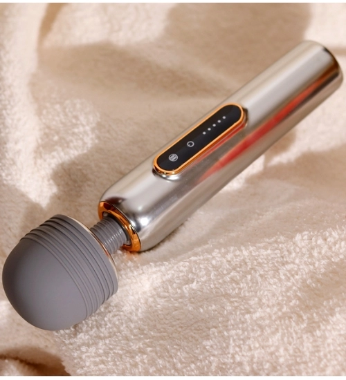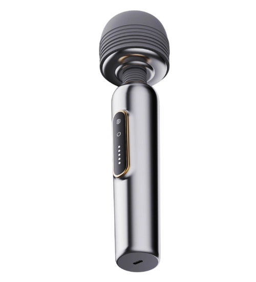 Lehká stříbrná masážní hůlka v sobě spojuje moderní design a praktičnost. Štíhlý tvar a lesklý stříbrný povrch jí dodávají elegantní a nenápadný vzhled. Nízká hmotnost zajišťuje, že pohodlně padne do ruky a umožňuje komfortní používání bez pocitu únavy.