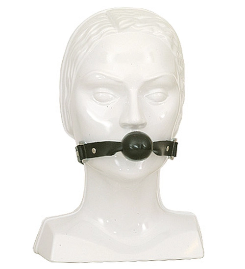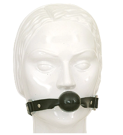 Roubík ve tvaru koule připevněný k pevným koženým řemínkům. Nastavitelná velikost umožňuje přizpůsobit výrobek vašim potřebám.
