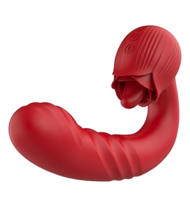 Červený vibrátor s pohyblivým jazykem
